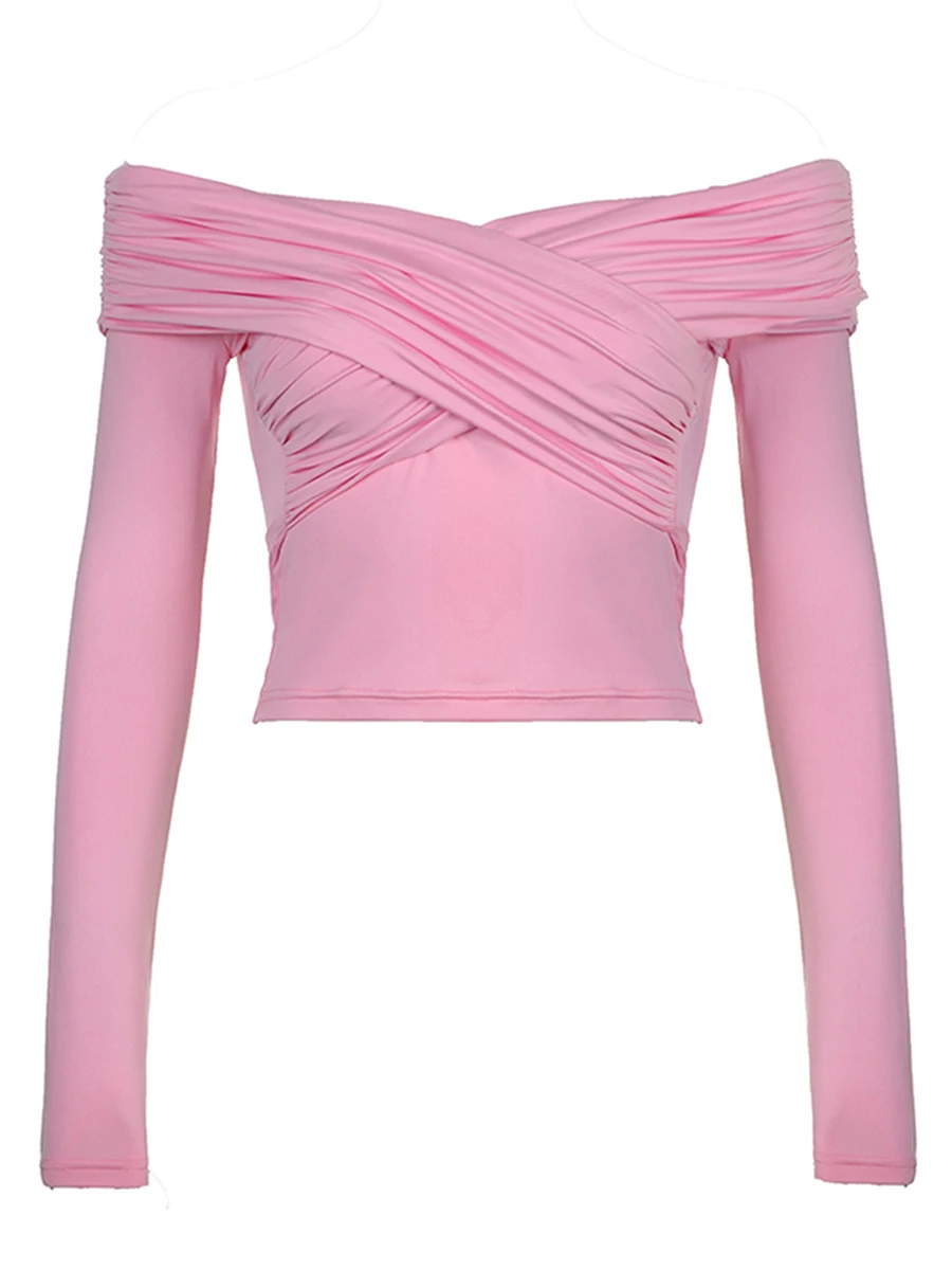 Front Cross V-Neck Long Sleeve Off Shoulder Shirts