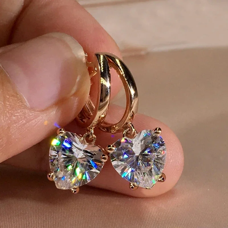 Heart Shape Zirconia Gold Color Dangle Earrings
